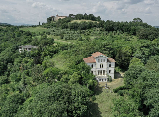 Spread over three floors, the villa's main façade faces south, offering breathtaking views of Montebello and the surrounding valley. With expansive interiors and expansive exteriors, adorned with a lush park of approximately 23,000 square meters, this property is primed for the creation of an exclusive residence or as a distinguished venue for notable endeavors.